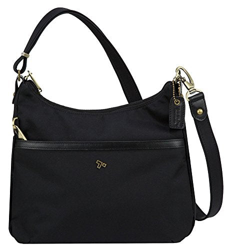 Details: This elegant statement hobo is deceptively versatile as a travel or daily companion bag. Featuring an intelligent organization compartment with RFID blocking card and passport slots, an open top wall pocket, a zippered wall pocket. The easy access, locking front zipped pocket, and rear snap-close pocket are perfect of a phone or quick grab items. Anti-Theft features including slash-resistant construction, locking compartments, slash-resistant and locking shoulder strap will protect you and your valuables. Thoughtfully crafted twill with leather trim touch points and antique brass finished hardware has been designed for those who desire the best.