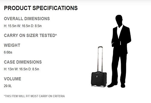 - Limited Lifetime Warranty. Carry-on size fits in most airplane overhead bins. Dimensions: Carry-on size fits in most airplane overhead bins. Dimensions: H 13.00" x L 16.50" x W 8.50" Weight: 6.6 lbs