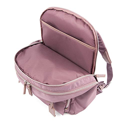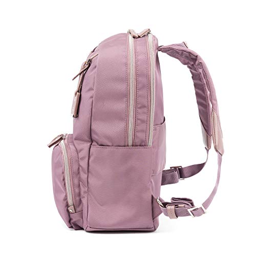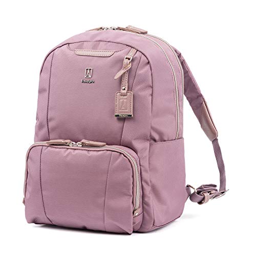 Details: The Maxlite 5 women's backpack from Travelpro is designed specifically for the modern woman in a slimmer profile than our laptop backpack. Convenient features built-in to this lightweight, ultra-durable backpack include a padded laptop or tablet sleeve, organizational pockets for power cords, back-up batteries, office supplies and more, a quick-access front pocket with magnetic closure ideal for cell phone or key storage and an exterior side pocket that fits a water bottle or compact umbrella with ease. Wear this bag with comfort using the padded shoulder straps or use the unobtrusive rear strap to Stack this bag on top of a spinner or Rollaboard suitcase for hands-free mobility.