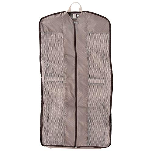 - Drop in, fold-out suiter packs clothes wrinkle-free. Interior tie down system includes built-in accessory pockets and TSA-compliant, removable quart-sized wet pocket for toiletries. Leather top and side carry handles plus bottom cup provide carrying options.
