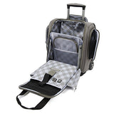- Fits under most major domestic airline seats. Variety of organizational compartments inside and out with room to spare for handbag storage inside.