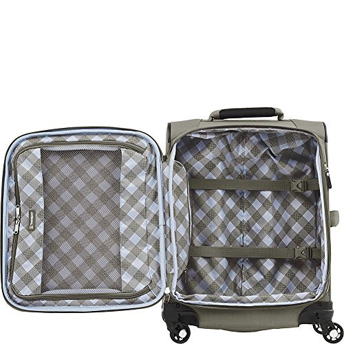 Details: The world is at your feet with this compact, ultra-lightweight carry-on spinner, designed to meet the size restrictions of most international airlines. Perfect for short to medium-length trips or for packing your onboard essentials, this must-have bag features a 2 -position adjustable PowerScope lite handle with comfortable Contour grip and four spinner wheels that provide an effortless 360 degree roll. Two exterior compartments, full-length interior lid pocket, side accessory pocket and adjustable interior hold-down straps keep you organized, while the high-tensile-strength expandable zipper maximizes packing space up to two additional inches. Backed by a new and expanded trusted traveler promise-for worry-free warranty coverage from Travelpro.