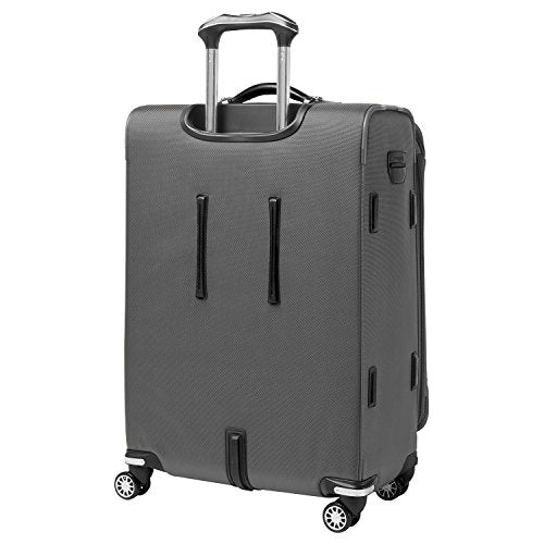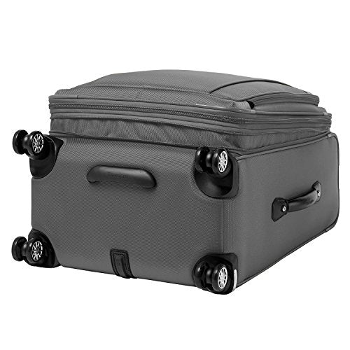 Details: The epitome of style, Travelpro Platinum Magna 2 luxury performance luggage is crafted with premium, ultra-durable fabrics and intelligent design innovations, making it ideal for frequent business travel and personal trips. This suiter bag is easy to maneuver through the airport with eight MagnaTrac self-aligning wheels that provide effortless 360-degree rolling whether you’re arriving or departing. The large capacity ensures there is room to pack everything you need for longer trips, and the bag can be expanded incrementally up to two inches for even more storage. The suitcase also features a patented telescoping handle that extends to three lengths: 38-in., 40-in., and 42.5-in. Other features include a cushioned Contour Grip for comfort and control, damage-resistant SUPRA zipper heads, a deluxe suiter to keep suits and dresses wrinkle-free, and a deluxe tie-down system with built-in accessory pockets to keep your clothing, shoes, and personal items neat and organized. The high-quality ballistic nylon fabric features DuraGuard coating to help protect against stains and abrasions due to airline handling. Backed by the Travelpro comprehensive warranty, you can travel worry-free knowing you’re protected against airline damage and defects in materials and workmanship for the life of the bag. Exterior: 100% nylon. Lining: 100% polyester. Imported.
