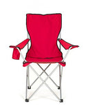 Details: 600 Denier polyester. Large comfortable matte silver metal frame. One self-fabric cup holder on right chair arm. Back un-zips from seat for easy decoration access. Plastic seat reinforcements. Comes with and folds into nylon carrying bag.