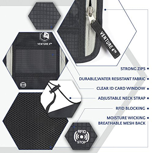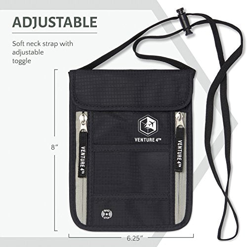 - ✅ SUITABLE FOR MEN AND WOMEN - 5.5" high and 8" wide , the VENTURE 4TH RFID Passport Holder can be comfortably WORN AROUND THE NECK AND UNDERNEATH YOUR CLOTHING to protect against pickpockets . It's slim enough that it is virtually invisible even under thin layers of clothing concealing your cash and valuables