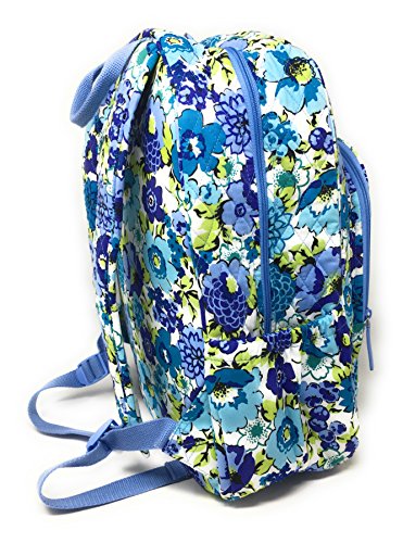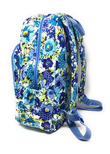 Details: With all the size of a serious backpack and all the organization a student could need, the Campus Backpack has school covered. The front compartment features two open slip pockets and two pen slips - all the necessities are organized and secure. The back larger main zippered compartment has another two open slip pockets, and a third zippered pocket lays on the exterior. Elasticized side pockets are large enough for water bottles and the back panel and straps are padded for cross-campus treks. Features both a top handle and dual adjustable shoulder straps. Machine wash cold, gentle cycle, only non-chlorine bleach when needed, line dry. Measures approximately 12 inches (W) x 16 inches (H) x 6.5 inches (D). Patterns with solid color interiors are designed and produced for Vera Bradley Outlet stores.