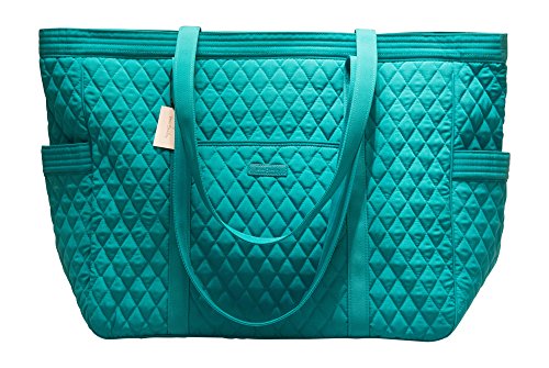 - Quilted microfiber fabric; dual fabric handles with approximate 12.5" drop