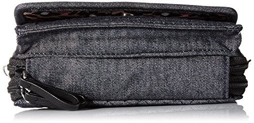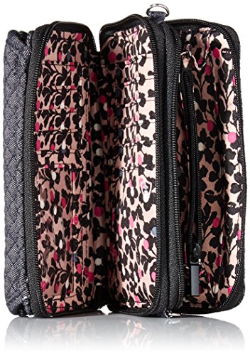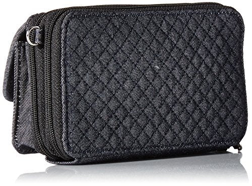 Details: Our quilted denim is a cotton/poly blend. Provides rfid protection for credit and debit cards. Exterior features a phone slip pocket. Interior features eight card slips, six slip pockets, one bill pocket, one zip pocket and one id window. Zip and magnetic closures.