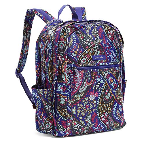 Details: Vera Bradley has crafted a backpack that makes organization fun. The Lighten Up Grand Backpack is the fashionable solution for storing your everyday work essentials – measuring 16 inches high, 12.5 inches wide, and 8 inches in diameter with 32 inch adjustable straps. Fully lined with printed polyester material, the interior features one slip pocket and a laptop compartment that work perfectly for safely storing laptops, tablets, and other work necessities. Crafted from lightweight, durable, water-repellent Lighten Up fabrication, this bag has a zip around closure that securely fastens your tech essentials and organizes all the accessories that play into your work day. The exterior features two expandable side slip pockets and two front zip, making this backpack a favorite. Step up your organization with an interior front pocket that features two slip pockets, four pen slips, one ID window, and one zip pocket. You can throw your most important materials together quickly and safely with ease and organization in the Lighten Up Grand Backpack. When quality material meets precise craftsmanship, you get a necessity made to last through all of life’s journeys. Care: Spot clean