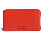 Unzip this wallet style to reveal two gusseted compartments that create an accordion-style look. The interior features 12 card slots, two bill pockets, a coin pocket and an ID window.
