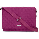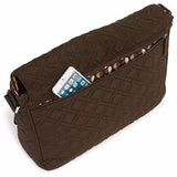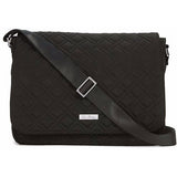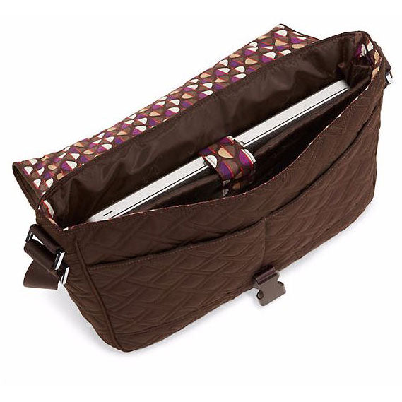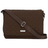Ideal for school or work, this adjustable crossbody easily holds a laptop, books and folders. A plastic push-lock closure opens to reveal two slip pockets under the flap. The additional interior pockets are great for organization.