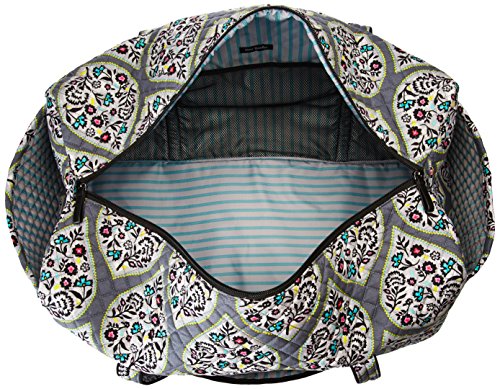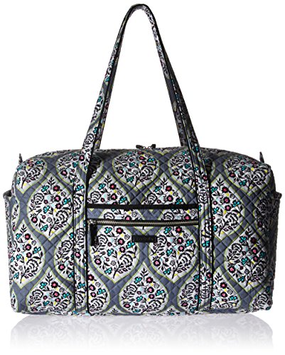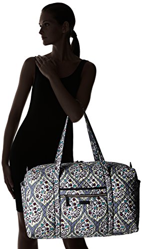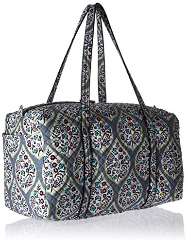 Details: Vera Bradley has crafted the perfect size, carryon compliant duffel to fit everything you need for your next adventure. The Iconic Large Travel Duffel is the fashionable solution for storing your travel essentials, packing efficiently, and avoiding checked bag fees - measuring 11.5 inches high, 22 inches wide, and 11.5 inches in diameter. The interior of this spacious duffel features one zip pocket and three elastic mesh pockets. Skip the extra carry on and take advantage of these pockets to organize your cosmetics, hair products, jewelry and other toiletries. The exterior features one zip pocket, a charger pocket, and three slip pockets that are perfect for stowing your travel essentials – wallet, phone, boarding passes, reading material, and snacks. Keep your most important items at your fingertips with pockets positioned for quick access and soundly fastened for your flight. The Iconic Large Travel Duffel keeps you hands-free so there is plenty of room for adventure. With a 15 inch strap drop, you can grab the dual straps on the go or throw over your shoulder for hands-free attention - either way, the top zip closure keeps your personal items securely protected. Whether it’s a weekend getaway or a girl’s trip, Vera Bradley has designed this necessity for every traveler. Crafted with our lightweight signature cotton, you can use the duffel to upgrade your organization or fold flat to pack as an extra travel bag. When quality material meets precise craftsmanship, you get a bag made to last through all of life’s journeys. Care: Machine wash cold, gentle cycle, use only non-chlorine bleach as needed; line dry