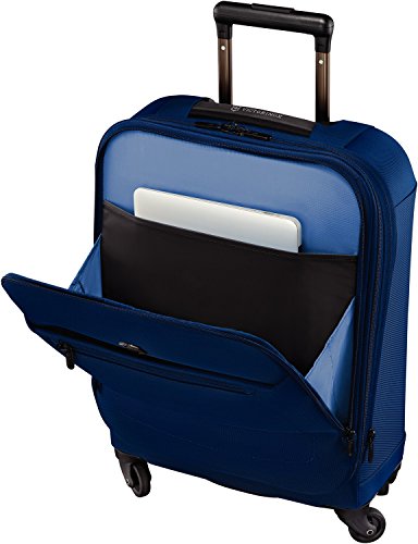 Details: Constructed with a lightweight, 100% pure polycarbonate frame and a durable nylon exterior fabric designed exclusively for Victorinox. Aircraft-grade, one-touch, dual-trolley aluminum handle system locks into three different positions - 94 cm (37 inch ), 99 cm (39 inch ) and 104 cm (41 inch ) - to accommodate travelers of various heights. Four premium, 50mm Hinomoto wheels ensure smooth roll across any surface and provide 360 Degree, zero weight-in-hand maneuverability. Spacious main packing area expands 3 cm (1.2 inch ) for additional packing capacity. Padded front u-shaped zippered compartment holds a 15.6 inch laptop. Two quick-access front pockets hold tickets and other essentials. Interior organization includes a large zippered mesh lid pocket and a zippered mesh hanging pocket containing dedicated storage for a Lifestyle Accessories 4.0 CheckSmart luggage tracking device (sold separately). X-shaped compression straps cover a greater surface area to keep folded items secure. Top retractable haul handle and bottom grab handle for easy carrying. Integrated ID tag for security and convenience. Lockable coil zippers provide superior burst strength on the main compartment and laptop compartment. Custom zipper pulls feature a thumb groove inspired by the Swiss Army Knife. Travel Sentry Approved combination lock easily secures belongings and allows U.S. airport security screeners to open the lock without destroying it and relock it after inspection. The Access Lock Combination Recovery Program allows you to register your lock combination on victorinox.com and recover it if it is ever forgotten. Covered by the Global 10-Year Limited Warranty .