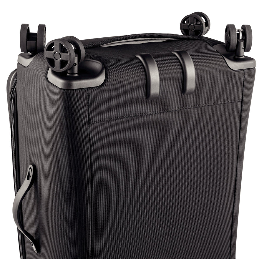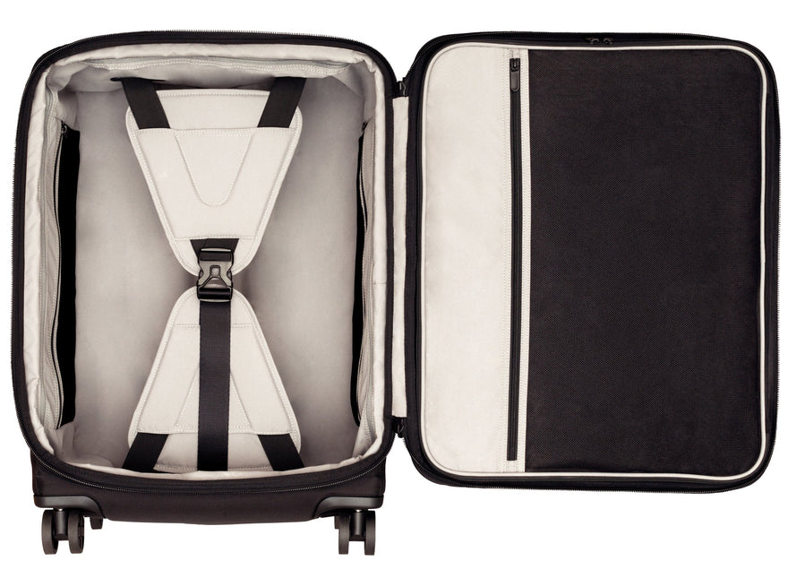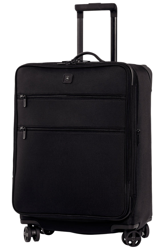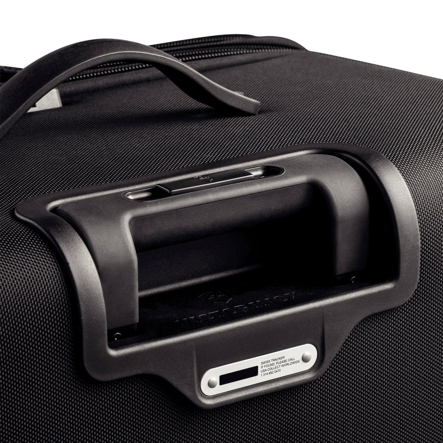 Details: Comfort grip, one-touch, dual-trolley aluminum handle system locks into three different positions - 41 inch 104 cm, 39 inch 99 cm and 37 inch 94 cm - to accommodate travelers of various heights. Dual-trolley handle system also allows you to adjust to the ideal handle position when transitioning from pushing the bag upright to pulling it on two-wheels. Dual-caster wheels feature soft tread offering ideal traction for a smooth roll across any surface while also providing 360 degree maneuverability and zero weight-in-hand. Spacious main packing area expands a full 2.5 inch 6 cm for additional packing capacity. Vertical compression straps hold clothing securely in place when the bag is tilted upright helping to reduce wrinkles. Removable full suite with foam bolsters can be used with our without the bag and holds two jackets, two pairs of pants and two shirts. Front panel features zippered pockets for travel documents. Corner guards provide added protection to areas of the case most prone to impact and abrasion. Top and side soft-grip retractable haul handles lay flat. Low-profile padded haul handle on bottom of case for easy lifting. Interlock lx attach-a-bag system easily secures an additional bag to the front of your upright for consolidated travel. Integrated slide-out id tag for security and convenience. Lockable YKK racquet coil zippers provide superior burst strength. Travel sentry approved luggage lock secures belongings while in transit and allows TSA screeners to open the lock without destroying it, and relock it after inspection. The access lock combination recovery program allows you to register your lock combination on victorinox.com and recover it if it is ever forgotten. Swiss tracker bag tracking program will reunite you with your bag anywhere in the world should it ever be lost - for free