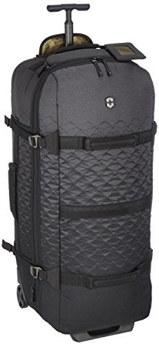 Details: Designed for adventure, this lightweight duffel contains convenient functionality and the capacity for an extended trip. One-touch, monopole handle system with ergonomic comfort grip locks into three different positions - 94 cm (37"), 99 cm (39") and 104 cm (41") - to accommodate travelers of various heights and zips away when not in use. Compact design of the monopole handle allows for maximum utilization of interior packing space. Inline wheels for a smooth and stable roll. Spacious main compartment with large U-shaped opening expands 3 cm (1.1") for additional capacity. Interior organization includes Y-shaped webbing compression straps, a large zippered mesh lid pocket and a zippered mesh side pocket containing a key fob and storage slots. Exterior organization includes a concealed front pocket and two rear, easy-to-clean, wet/dry pockets ideal for storing running shoes or dirty clothes. Adjustable side compression straps with durable Hypalon attachments cinch to stabilize heavy loads. Rear skid plates provide protection to areas most prone to abrasion. Removable attach-a-bag strap secures an additional bag to the front of the duffel and holds up to 13.6 kg (30 lbs). Top and side haul handles and bottom grab slot for easy carrying. Lockable zippers with Hypalon pulls. Removable luggage tag. Travel Sentry Approved combination lock secures belongings and allows airport security screeners to open the lock without destroying it and relock it after inspection. Access Lock Combination Recovery Program allows you to register your lock combination on victorinox.com and recover it if it is ever forgotten. 7.47 lbs / 3.39 kg. 5736 cu in / 94 l (expands to 5919 cu in / 97 l)