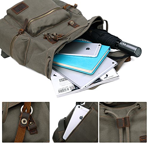 - ☆MULTI-PURPOSE: The vintage canvas backpack can be used as a hiking backpack, school rucksack, causal travel daypack, high school or college bag, shopping daypack, work or office rucksack etc.