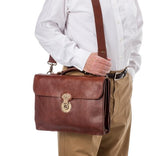 Details: Look professional and keep your files safe while traveling to and from work or school with this Will Leather Jacques Leather Portfolio Designer Briefcase in Cognac Brown. This sturdy, stylish briefcase is the perfect choice for a professional appearance.