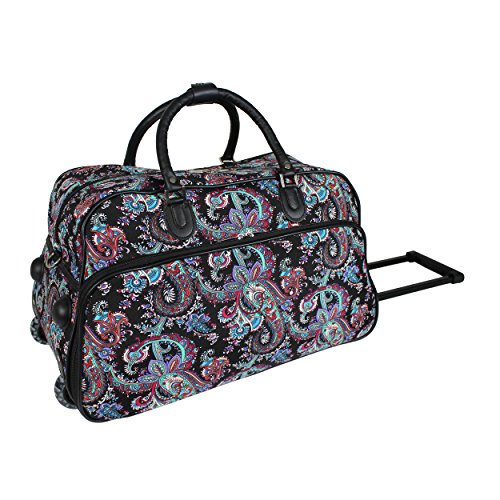 Details: This fashion-forward World Traveler rolling duffel bag makes a fashion statement and it is ready for anything. Offering a fully lined interior, retractable handle and more must-have features, this bag has the makings of an ideal travel companion. Take on whatever travel may bring with this rolling duffel bag. Imported.