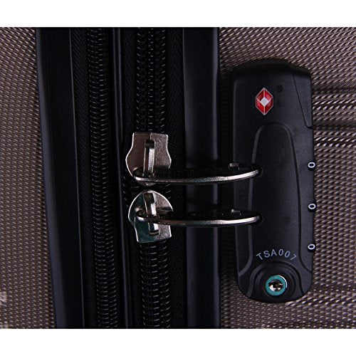 - Micro-diamond ABS shell with scratch resistant finish. built-in 3-digit TSA combination lock, Eight (8) 360 degree spinner wheels, retractable handle system and ergonomic gel padded top and side grip handles