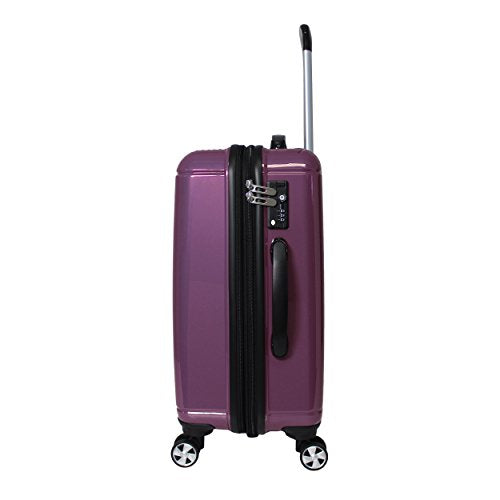 - Polycarbonate shell, 3-digit TSA combination lock, 2" expanded, dual wheel 360 degree spinner system, push-button telescopic handle system, padded carry handles, dual zipper compartment with mesh zipper pocket and compression straps