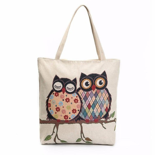 Shop Xiniu Bags Women Owl Printed Canvas Tote – Luggage Factory