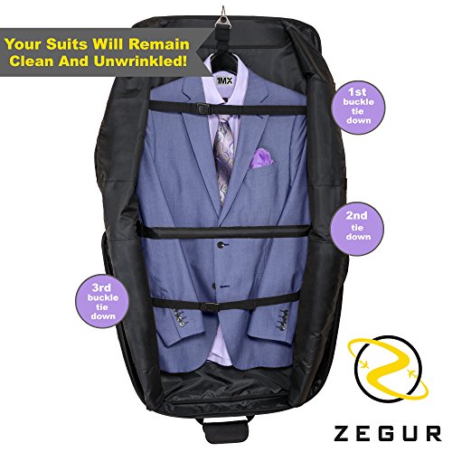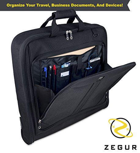 - ♥ LOOK GREAT AND TRAVEL IN STYLE: With a sleek, fashionable design, the Zegur garment bag luggage ensures that both men and women travel in style! It also features an adjustable and detachable shoulder strap, providing versatility and comfort. For added convenience, it fits in all large overhead bins.
