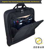 - ♥ MAKE YOUR TRAVEL FUN ENJOYABLE AND STRESS-FREE: Whether you're headed for a business trip or a weekend getaway, the Zegur garment bag keeps you organized and takes the hassle out of packing! Thanks to multiple interior zipper pockets, it maximizes storage capacity, holding everything from suits, dresses to shoes and ties. For even more space, we added an exterior pocket that provides easy access to electronics and travel or business documents, so you can just focus on having a fantastic trip!