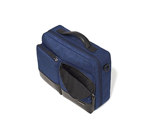 Details: Zero Halliburton Lightweight Business Shoulder Bag_x000D_ Perfect for the well-appointed minimalist, the compact shoulder bag features a padded sleeve for a tablet or small laptop, internal storage for organizing mobile phones and accessories, and two, easily-accessible, zippered external pockets. Carry the shoulder bag with its padded strap, top handle or use the sleeve to easily slide on to an upright luggage handle. Available in navy or black mélange nylon with black leather trim._x000D_ 3 Year Limited Lifetime WarrantyLightweightMade in the USAPadded Shoulder StrapRemovable Shoulder StrapDimensions: 13.0W x 4.0D x 10.0H inWeight: 1.5lb
