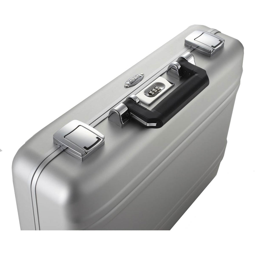 Protect your business essentials in style with the Premier Aluminum Attache from Zero Halliburton. Each 4rdquo; Premier Attache is constructed of premium anodized aluminum, and includes customized draw-bolt latches and a three-digit combination lock that will keep your papers and valuables safe and secure.