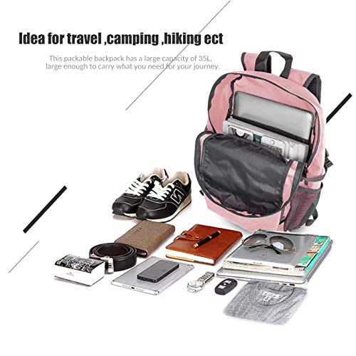 - 35L ! TRAVEL CAPACITY - Designed with 35L travel capacity yet foldable, this backpack is suitable for both day and week long trips. It has one main compartment, two zipped front pockets, two side pockets as well as external attachment points. It has spacious pockets to help you keep your things organized and separated. The bag is roomy enough for your laptop, tablet, clothes, towel, journal and a couple beers (if needed) etc.